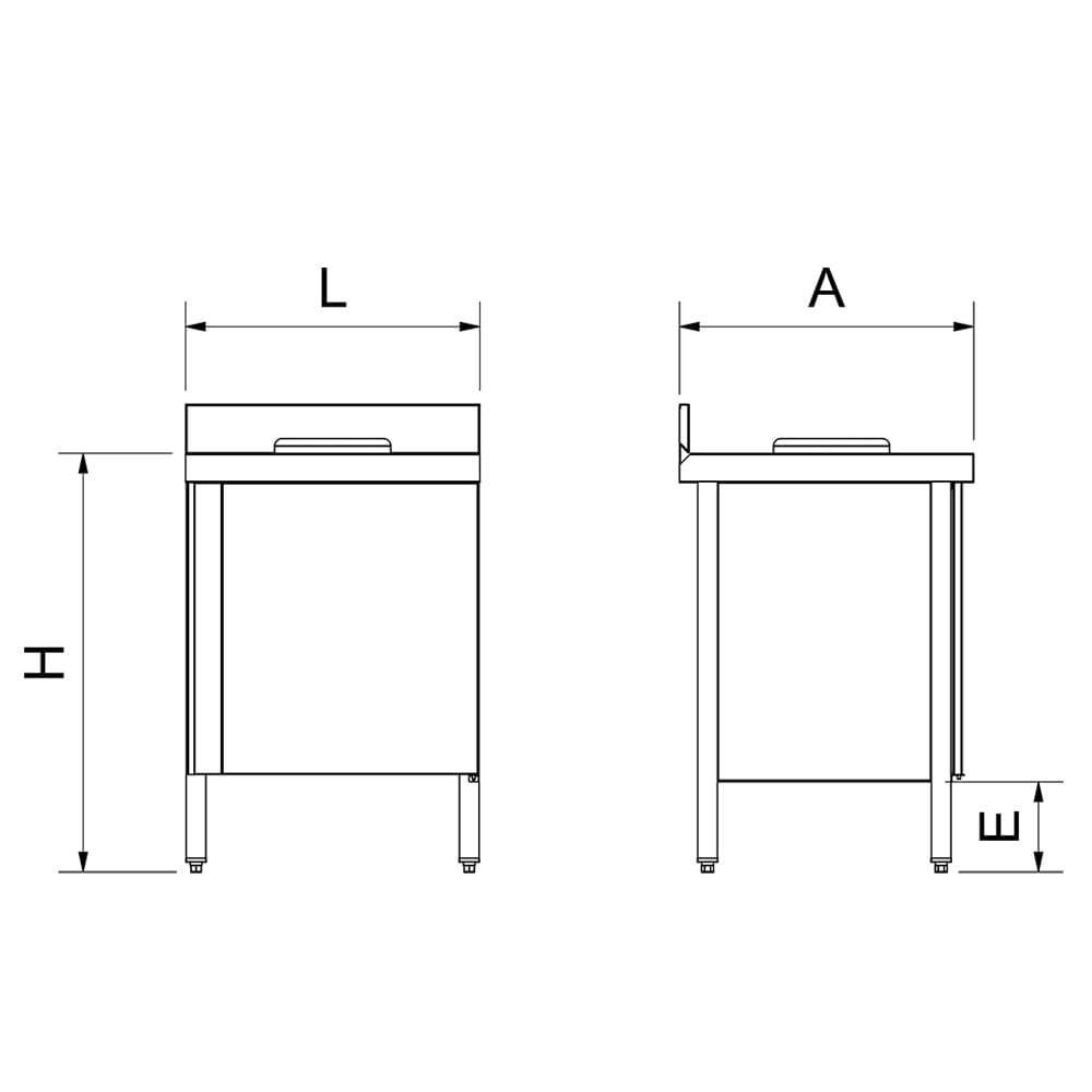 La porte frontale offre un accès simple et discret à la poubelle, facilitant le remplacement des sacs et l’entretien quotidien. Grâce à son dosseret arrière de 100 mm, cette table protège efficacement les murs contre les projections et optimise l’aménagement de votre cuisine, laboratoire ou zone de préparation.