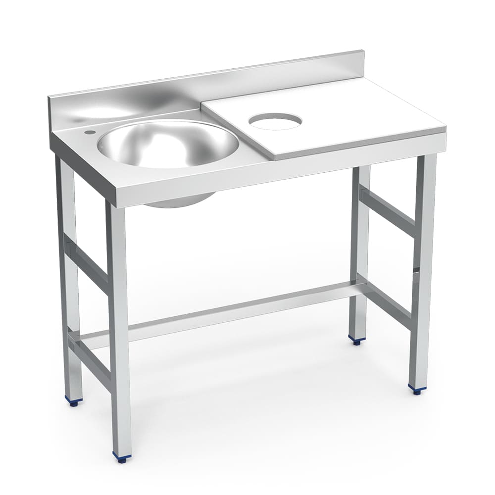 Cette table constitue une solution idéale pour les cuisines professionnelles, boucheries, poissonneries et laboratoires alimentaires nécessitant un espace combinant lavage et découpe dans des conditions d’hygiène optimales.